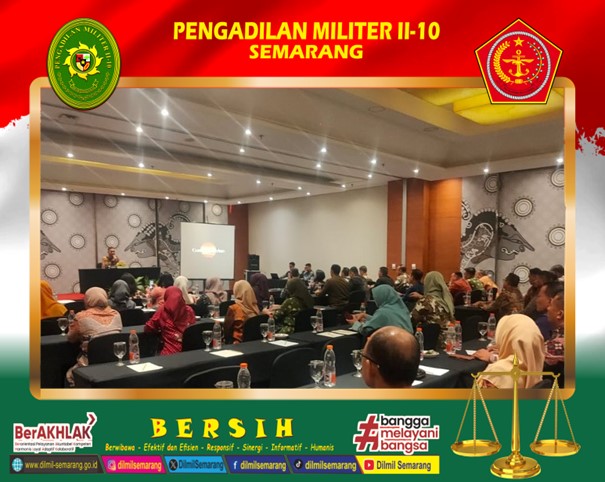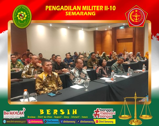 Yogyakarta - Kadilmil II-10 Semarang Kolonel Chk Yudi Pranoto A, S.H. mengikuti kegiatan Pembinaan dan Pengawasan oleh Direktur Jenderal Badan Peradilan Militer dan Peradilan Tata Usaha Negara Marsekal Muda TNI Dr. Yuwono Agung Nugroho, S.H., M.H., yang diselenggarakan secara tatap muka (luring) di Yogyakarta pada hari Jumat, 13 September 2024.