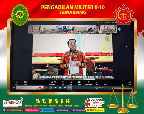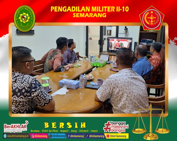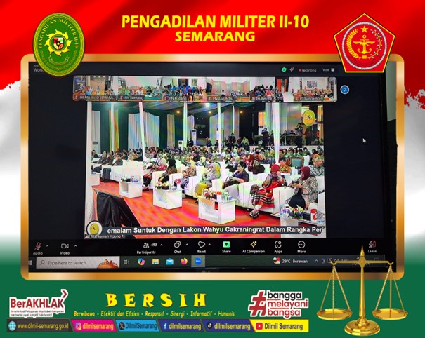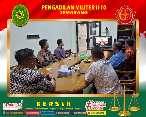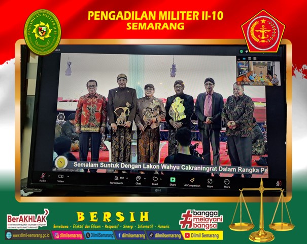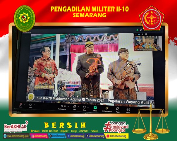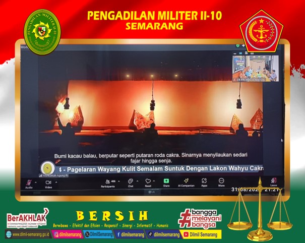 Semarang - Kadilmil II-10 Semarang Kolonel Chk Yudi Pranoto A, S.H. beserta staf, menyaksikan secara online Pergelaran Wayang Kulit dengan lakon "Wahyu Cakraningrat". Pergelaran wayang kulit diselenggarakan masih dalam rangka Perayaan HUT Ke-79 MA RI dan dibuka secara langsung oleh YM Ketua Mahkamah Agung pada hari Sabtu, 31 Agustus 2024.