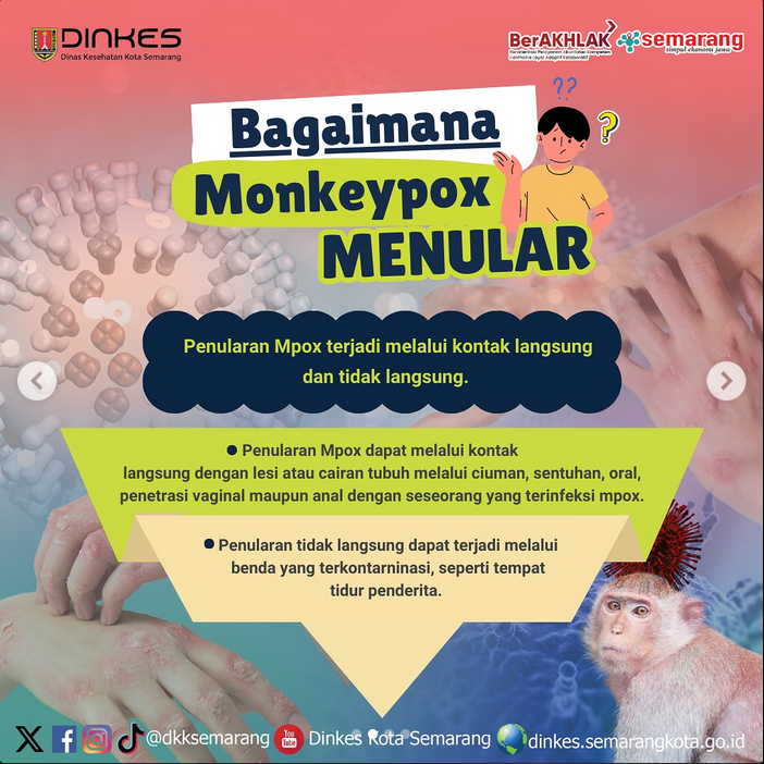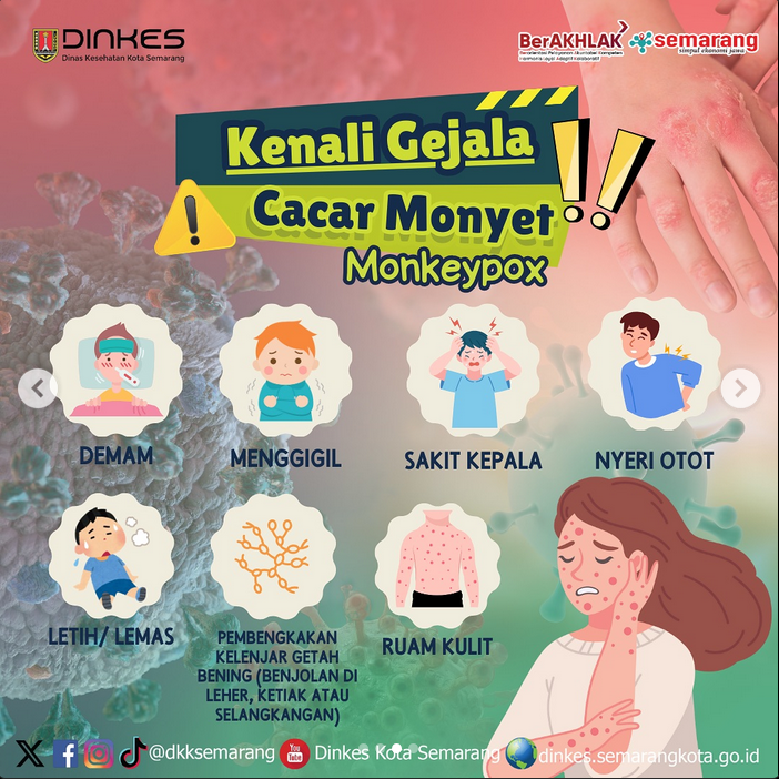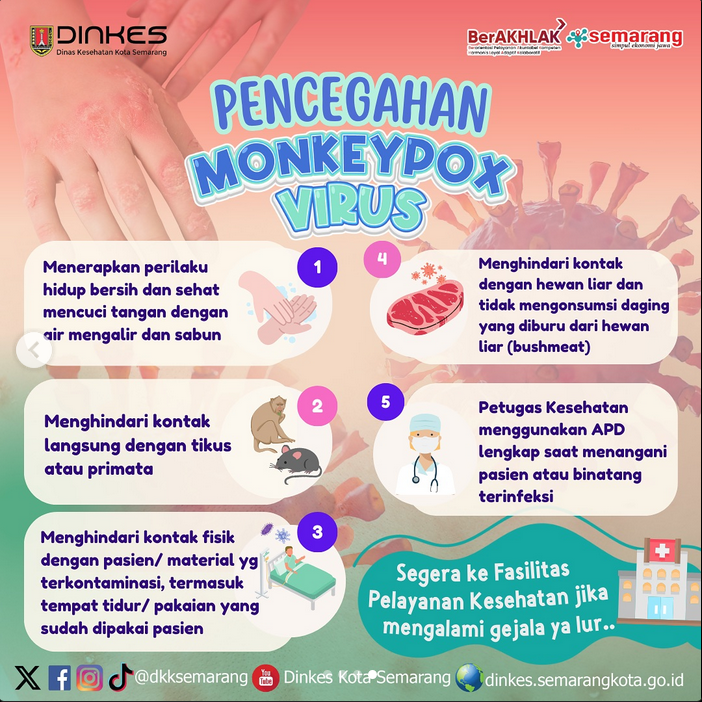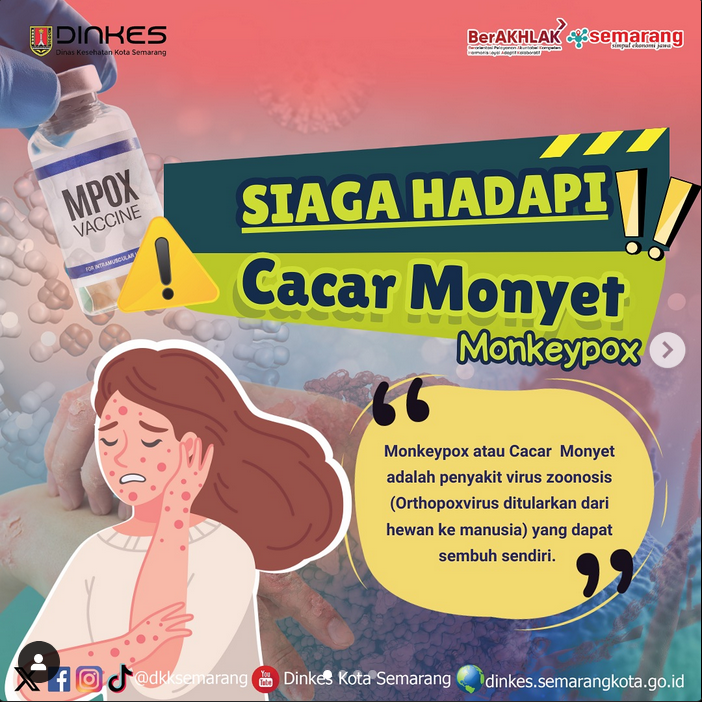 Semarang - WHO menetapkan Mpox berstatus Keadaan Darurat Kesehatan Masyarakat yang menjadi Perhatian Internasional atau Public Health Emergency of International Concern/PHEIC pada 14 Agustus 2024. Walaupun di Kota Semarang tidak ada yang terjangkit virus tersebut, kita wajib waspada dan kenali bagaimana pencegahannya