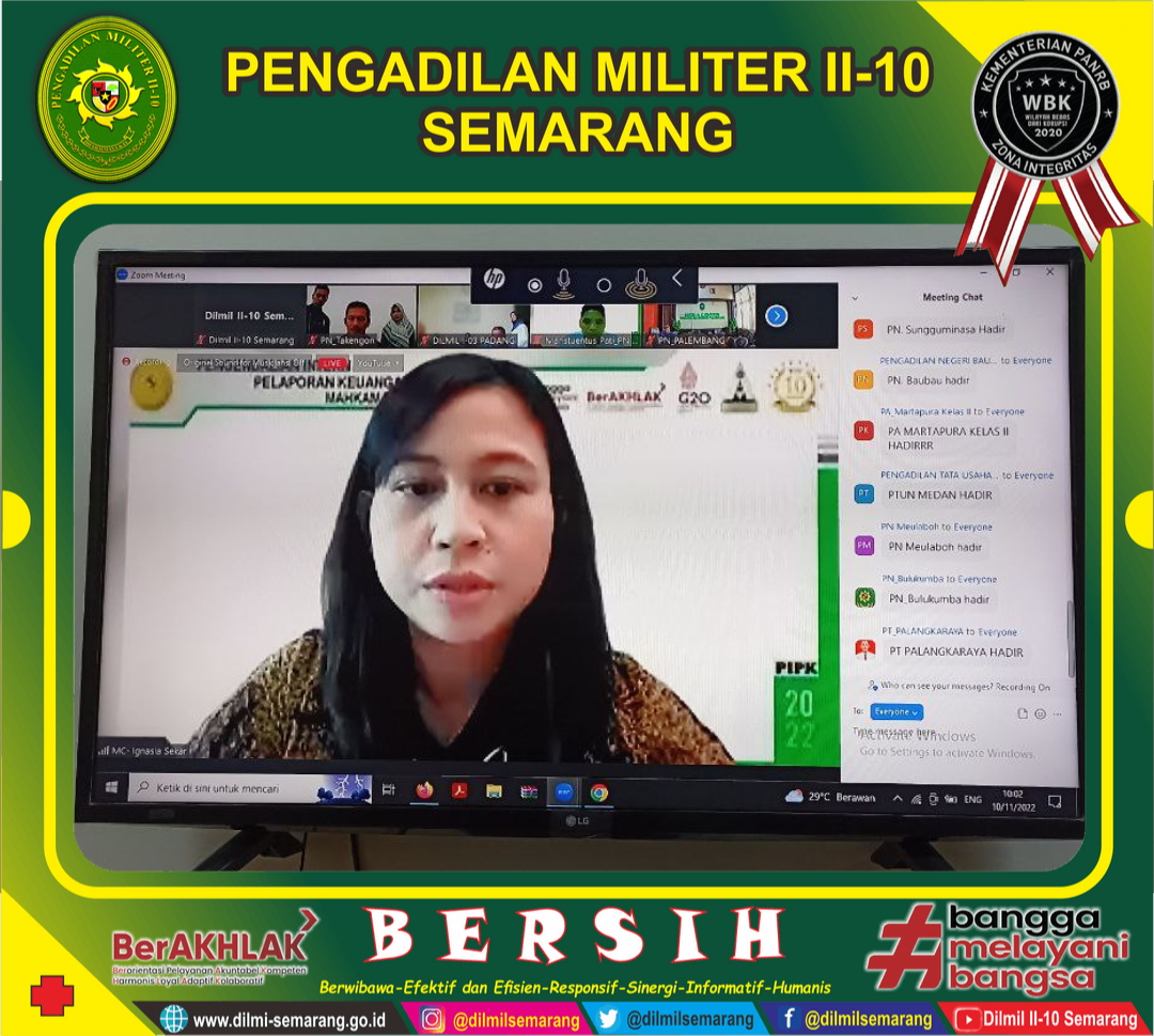 Semarang - Kabiro Keuangan Mahkamah Agung RI mengadakan Focus Grup Discussion Persiapan Penilaian PIPK secara daring yang diikuti oleh Kasubbag Umum dan Keuangan serta Kasubbag Kepegawaian dan Ortala.