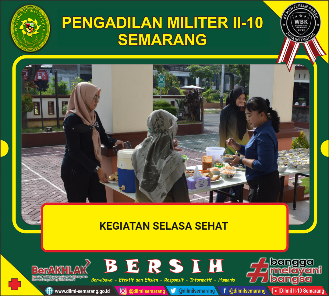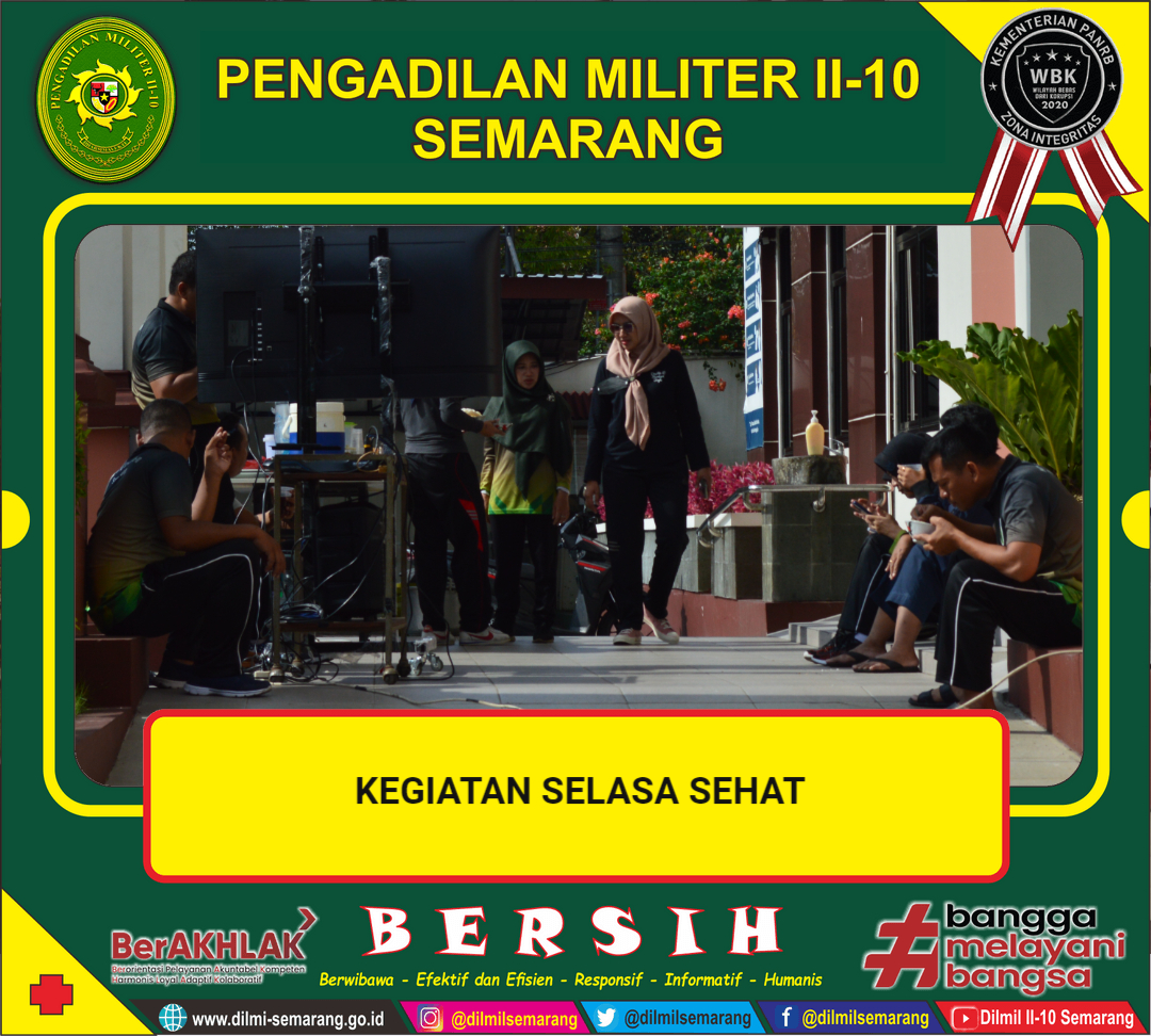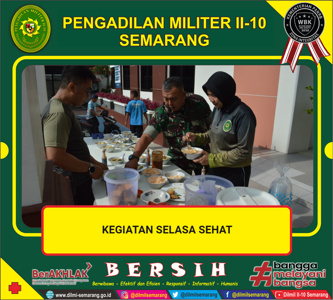 Semarang - Menyambut bulan suci Ramadhan kegiatan Selasa Sehat, 21 Maret 2023 dilaksanakan dengan olah raga dan sarapan bersama Kadilmil II-10 Semarang Letkol Chk Yudi Pranoto Atmojo, S.H. beserta Ketua Dyk Dilmil ibu Novita Yudi dan seluruh anggota Dilmil II-10 Semarang sebagai bentuk rasa gembira menyongsong Bulan suci Ramadhan dan mendekatkan pimpinan dengan anggota. #dilmil #eberpadu #militer #pengadilanmiliter #pengadilan #tni #mahkamahagung #sobatdilmil #sobatma #kadilmil #dilmilsemarang #dilmilsemarangbersih #dilmilsemarangwbbm