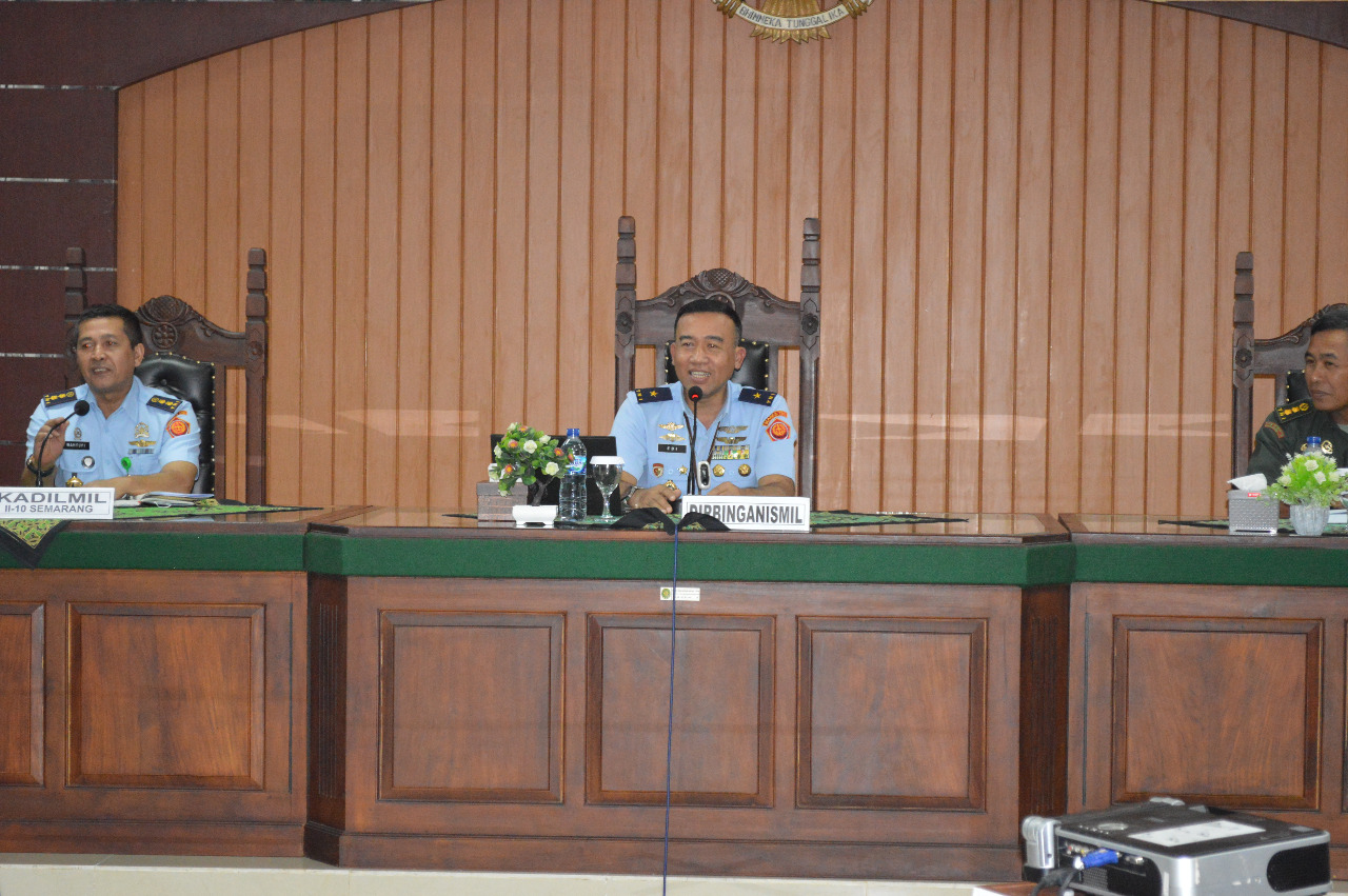Semarang - Kunjungan Dir Binganismin Dil Mil Marsekal Pertama TNI Edi Wuryanto, S.I.P., C.Fr.A ke Pengadilan MIliter II-10 Semarang beserta tim yang disambut oleh Kadilmil Letkol Sus Wahyupi, S.H., M.H.. Setelah berkeliling meninjau fasilitas yang disediakan, kegiatan dilanjutkan dengan pengarahan.