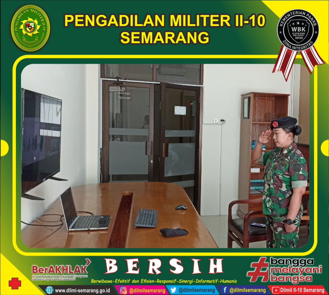 Semarang - Laporan kenaikan pangkat Kadilmil Letkol Sus Wahyupi, S.H., M.H. menjadi Kolonel Sus kepada Kadilmiltama Marsma TNI Haryo Kuworo, S.H., M.Hum. di Pengadilan Militer Utama Jakarta dan Letda KH/W Amalia Galih Wangi, S.H., M.H. menjadi Lettu KH/W di secara daring dari Pengadilan Militer II-10 Semarang.