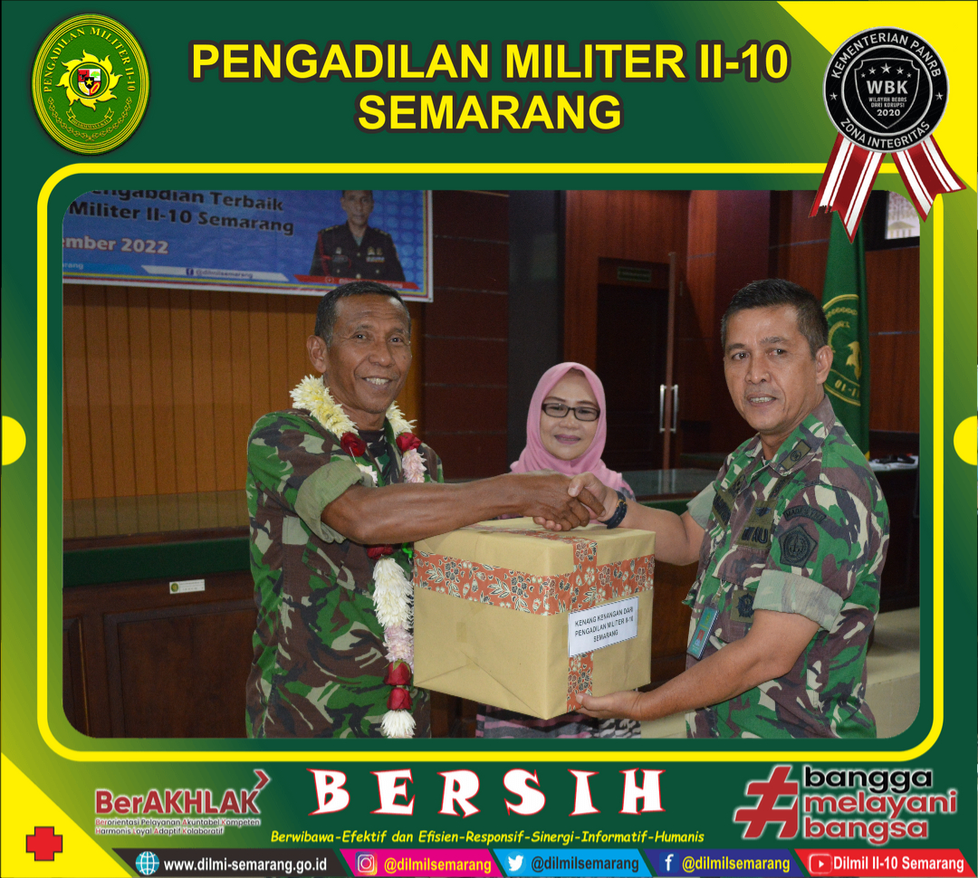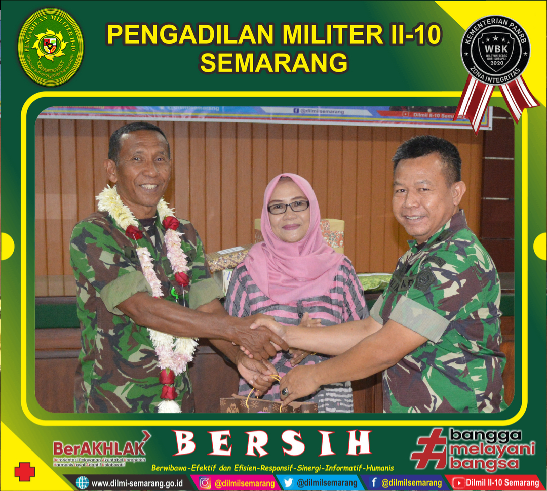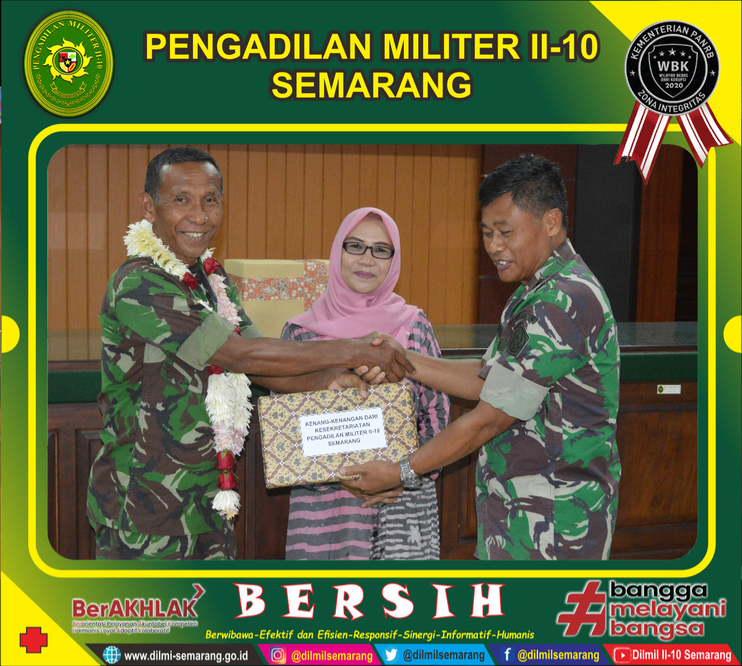 Semarang - Pengantar Purna Tugas Letkol Chk Asmawi S.H., M.H. oleh Kadilmil II-10 Semarang Letkol Sus Wahyupi, S.H., M.H. beserta seluruh anggota.