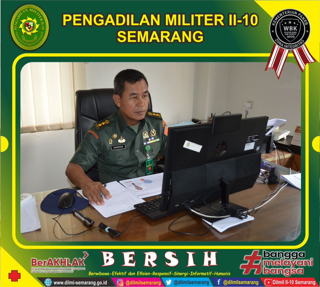Semarang - Wakadilmil Letkol Chk Khamdan, S.Ag., S.H. mengikuti Seminar Rancangan Aktualisasi CPNS Mahkamah Agung Gelombang 2 Angkatan 7 sebagai Mentor dari 2 personil CPNS Pengadilan Militer II-10 Semarang yang ikut sebagai peserta.