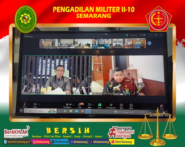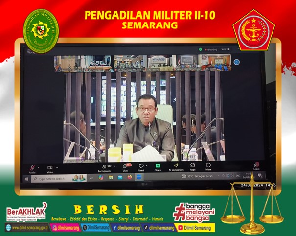 Semarang - Selasa 24 September 2024, Kadilmil II-10 Semarang Kolonel Chk Yudi Pranoto A, S.H. bersama Sekretaris, Kasubbag Kepegawaian dan Ortala serta perwakilan PPNPN Pengadilan Militer II-10 Semarang, mengikuti Acara Sosialisasi secara Daring Berkenaan dengan Keputusan Menteri Pendayagunaan Aparatur Negara dan Reformasi Birokrasi Nomor 347 Tahun 2024 tentang Mekanisme Seleksi Pegawai Pemerintah dengan Perjanjian Kerja yang diselenggarakan Sekretaris Mahkamah Agung RI, Sosialisasi membahas Kebijakan Pengadaan PPPK TA 2024 dan Mekanisme Pelaksanaan Seleksi Pengadaan PPPK TA 2024.