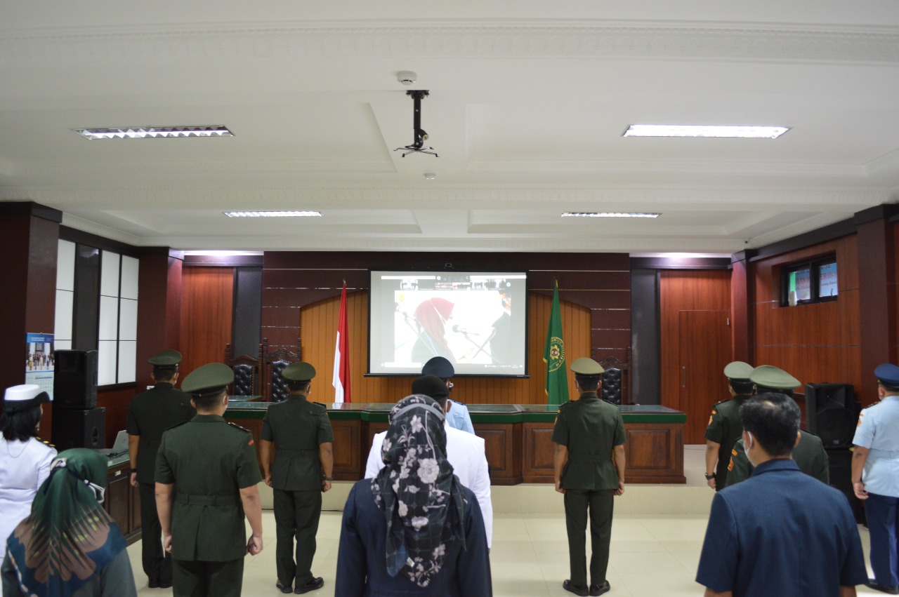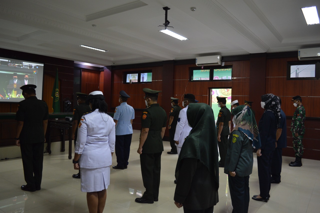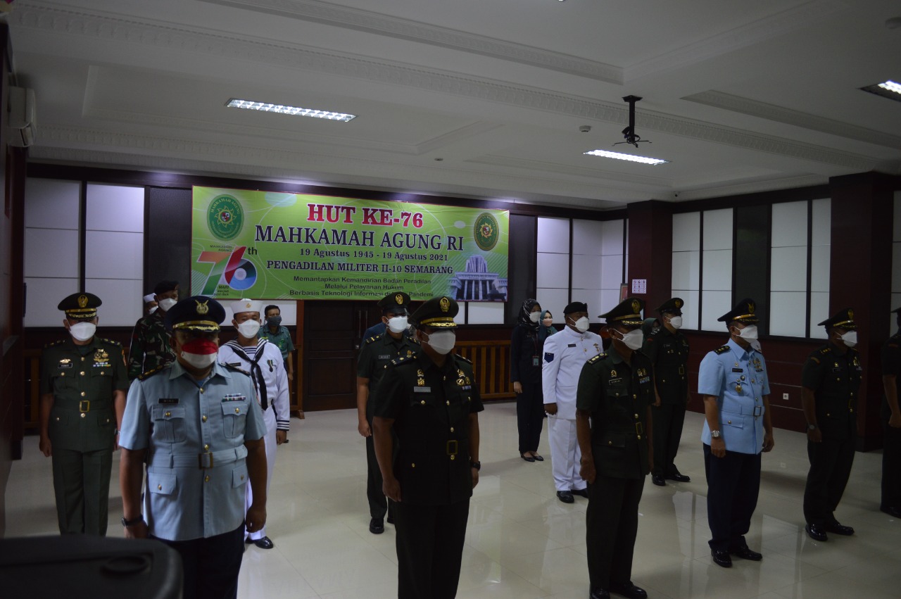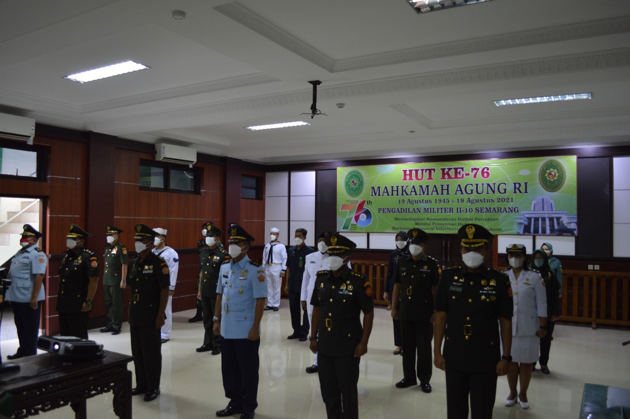 Semarang - Ps. Kadilmil II-10 Semarang Letkol Sus Wahyupi, S.H., M.H. beserta seluruh personil Pengadilan Militer II-10 Semarang mengikuti Upacara Virtusl Peringatan HUT ke-76 Mahkamah Agung RI.